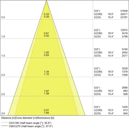 De gradenbundel geeft informatie over hoe breed het licht wordt uitgestraald. Dit zit tussen de 0 en 360 graden (D). Hoe kleiner de hoek, hoe specifieker de lichtbundel is. Over het algemeen is een smalle gradenbundel perfect voor sfeer- of accentverlichting, terwijl een brede gradenbundel ideaal is om grote oppervlaktes te verlichten.