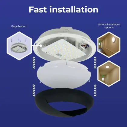 Noxion LED Bulkhead Pro V2 Wit 12/16/20W 2400lm - 830-840-865 CCT | 325mm - IP65 - Nood 3H + Ooglid Ring Zwart